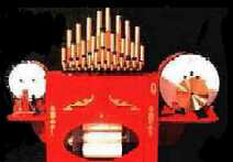 Painted Red with Gold trim the D42R is our most POPULAR band organ. It contains 42 Calliope Pipes, Bass and Snare Drums with solid brass hardware, Cymbal and Triangle. It is COIN-OPERATED or continuous free play that accommodates 10-15 tune "0" rolls that automatically rewind to play again. 5' wide and 4'3" high and 23" deep it weighs about 180 lbs.